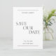 Meddela din speciella dag med detta klassiska, elegant spara-till-datum-kort, med elegant och minimalistisk typografi. Perfekt för ett enkelt och modernt bröllop-tema, det här kortet anger en tidlös ton för firande.