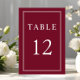 Klassisk Elegant Formell Burgunderröd Bröllops Bordnummerkort