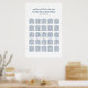 Formell marinblå bröllopsställning planschdesign med vacker typografi som kombinerar traditionellt blomstrande kalligrafisk skrift med klassisk blockbokstav. Den anpassade texten kan anpassas med monogram av brud och brudgum namn, bröllopsdatum, gästnamn och deras bordstilldelning. Köp vår Klassisk Elegant Marinblå Bröllops Kollektion för samordnade designer.