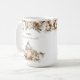 Vit och gräddkaka eller choklad Jul Large Coffee Mugg i det klassiska moderna jordbrukshuset stil med gräs, vita julblommor, lantern och en söt fågel. Skräddarsydd text - Kate Eden Art