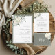 Klassisk inbjudan till Elegant bröllop som innehåller elfenbensblommor med vattenfärg och grönska med en gräns av oliver.
