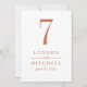 Elegant och snyggt terracotta orange bröllop-kort för bordsnummer har en vacker, minimalistisk monogramdesign för typografi. Anpassningsbarnas text och bordsnummer kan vara helt i personlig med bridens och gruppens namn och bröllop. Observera att varje kort för bordsnummer måste anpassas och läggas till individuellt i kundvagnen (1,2,3...).osv.). Var snäll och se till att vår klassiska Elegant Terracotta Orange Bröllop Collection samordnar designen.