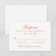Formell terracotta bröllop-responskort i orange har en vacker typografi som kombinerar ett traditionellt blomstrande kalligrafiskt skript med klassisk blockering. Anpassningsbarna kan vara helt personlig med OSANS förfallodatum. Var snäll och se till att vår klassiska Elegant Terracotta Orange Bröllop Collection samordnar designen.