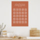 Formell terracotta orange bröllop-sätesdiagram poster en vacker typografi som kombinerar ett traditionellt blomstrande kalligrafiskt skript med klassisk blockering. Anpassningsbarnas text kan vara helt personlig med ett monogram av briden och brudgummen namn, bröllop, gästen namn och deras uppdrag i bord. Var snäll och se till att vår klassiska Elegant Terracotta Orange Bröllop Collection samordnar designen.