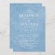 Inbjudan Classic och elegant bröllop med en kornblomsblå vattenfärgsbakgrund och vitt brev. Endast text med traditionell ordalydelse. Pappra alternativ för digital utskrift eller fysisk utskrift. Anpassa den till namnen av Mr. och Mrs., plats, register, OSA information och alla detaljer som du behöver ta med. Matchande svitprodukter finns.