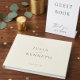 Dessa klassiska enkla personliga bröllopsgästbok med modern typografi ser trendiga och chic ut. Redigera gärna med dina namn och bröllopsdatum. Matchande inbjudningar, svarsblanketter och bifogade kort samt dagens brevpapper finns också tillgängliga.