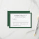 Ett smakfullt kort för bröllop OSA med klassisk enkelhet, med den här designen har en grönt för skogen gräns som ramar in texten för att fästa uppmärksamheten på dina OSOR som visas på kortet. Du kan lägga till, ta bort eller justera textens placering till kostym efter dina behov. Skogsprogrammet grönt och vitt färg fungerar bra för bröllop under alla årstider, men är särskilt trevligt under höst- och vintermånaderna. Anpassa textmallen med det svarsdatum som krävs.