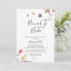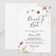 Denna klassiska färgrika brunch med brudens shower-inbjudan är perfekt för en modern brölloppsfest. Designen har gula, lila, vita vilda blommor med löv i en rosa och grön akvarellbakgrund.