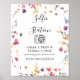Denna klassiska färgrika vilda blomster-selfie-statsign är perfekt för ett rustikt bröllop eller brudvisning. Designen har gula, lila, vita vilda blommor med lövverk i en rosa och grön akvarellbakgrund.