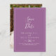 Denna klassiska färgstarka vild koordinat bröllop spara datum är perfekt för ett orustiskt bröllop. Den enkla och elegant designen har skripttypografi av klassisk och finare i lila och vitt.