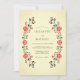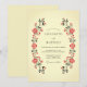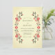 Denna design frammanar en varm, traditionell cottagecore-estetik med sin symmetriska blommiga komposition. Den krämfärgade elfenbensbakgrunden ger en mjuk bas för de livfulla röda rosorna och den djupt gröna bladverken. Ömtåliga röda bär och mörka blad kompletterar de blommande rosorna för att skapa en vintage botanisk look. Perfekt för ett mysigt landsbygds- eller rustikt höstbröllop.