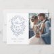Klassisk Fransk Blått Blommigt Vapensköld Bröllop Tack Kort