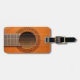 Ett närliggande foto av den dekorerade rosetten runt ljud-hål av en klassisk gitarr, med en inlagd mönster i rött, svart och grönt på brunt färgad, med flit och nylonsträngar.