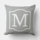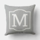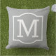 En klassisk utomhusdynor med en djärv vit monogram initial bokstav inuti en dekorativ fästelistram på en sval grå bakgrund. Den överdimensionerade bokstaven och den eleganta skurna kanten skapar en förfinad, neutral accent för trädgårdsmöbler, verandor eller däcksoffset. Initialen är helt anpassningsbar.