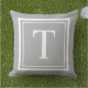 En klassisk utomhusdynor med en djärv vit monograminitial inom en fyrkantig ram på en sval grå bakgrund. Den tidlösa serif-bokstaven och den rena geometriska ramen skapar en förfinad, neutral accent för trädgårdsmöbler, verandor eller däcksoffsetar. Initialen är helt anpassningsbar.