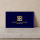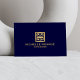 En faux metallic guld greek nyckel emblem kombineras med ditt namn eller namn för en chic logotyp om denna mall för visitkort. Ställ in en mörk marin blå bakgrund för ett luxeestetiskt ämne. Art och design © 1201AM KREATIV / www.1201am.com
