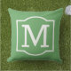 En klassisk utomhusdyna med en djärv vit monograminitial inuti en dekorativ fäst ram på en rik grön bakgrund. Den överdimensionerade serif-bokstaven och den eleganta hackade kanten ger en fräsch, prep-aktig accent till patio-möbler, trädgårdsmöbler eller veranda-stolar. Initialen är helt anpassningsbar.