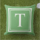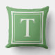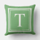 En klassisk utomhuskudde med en djärv vit monograminitial inom en fyrkantig ram på en rik grön bakgrund. Den tidlösa serif-bokstaven och den rena geometriska ramen ger en fräsch, prepptyngd accent för uteplatsmöbler eller trädgårdsmöbler. Initialen är helt anpassningsbar.