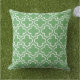 En klassisk utomhusdyna med ett vitt quatrefoil-fackverksmönster på en grön bakgrund. Den marockanskinspirerade gitterdesignen ger lugn, naturlig geometrisk textur till trädgårdsmöbler, trädgårdssoffa eller veranda-sitsar. En lugnande accent som smälter samman med grönska och jordtonad utomhusdekor.
