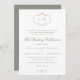 klassisk grönt, guld vapensköld, monogram bröllop inbjudningar