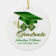 Det här prydnadsämnet har grönt och guld och tassel på diamantsköldar med ditt examensår, examensbevis, namn och skola. Gör en underbar gåva den här julhelgen. Enkel att anpassa med alternativ för anpassningsbar.