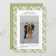 Sprid helgdag till familj och vänner den här säsongen med vårt klassiska, adjektiva Grönt Tartan Play Anpassningsbar Photo jul-Helgdag Card. Det här kortet är en perfekt för att visa ditt favoritfoto från lodrät eller porträtt och skapa en äkta personlig beröring med en tidlös grönt Gingham-plaid-design. Den omvända sidan ger utrymme för ett anpassningsbar-meddelande som ställs in mot en passande grönt-bakgrund som du enkelt kan redigera eller ta bort för kostym. Du kan också anpassa färg för att komplettera din fotopalett, skapar det här kortet så unikt som dina helgdag