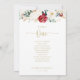 Denna klassiska guld blomstermönstrade bord nummer 1 sittplan är perfekt för en rustik bröllopsfest. Designen har akvarellmotiv i vitt, burgunderrött och guld med blommor och bär med grönt lövverk arrangerade i eleganta buketter.