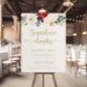 Denna klassiska guldblommiga signaturdrycksskylt är perfekt för en rustik bröllop. Designen har vattenfärg i vitt, burgunderrött och guld med blommor och bär med grönt lövverk arrangerade i eleganta buketter.
