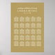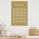 En lyxig bröllopsplatskarta i monogramstil med en rik antika guld bakgrund och klassisk vit typografi. Era namn visas i fetstil med raffinerad serif-typ och "Bröllopsfirande för" i elegant script ovanför. Bordslayouten guidar gästerna med diskret glamour. Helt anpassningsbar.