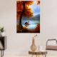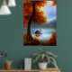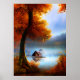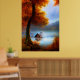 Klassisk höst en hut a Sjö träd crimson löv Poster