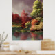 Klassisk höstvy över ett Sjö träd crimson lövs Poster