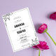 En tidlös svartvit bröllopsinbjudan med djärv modern typografi, vintage-stil-hörn och en ren minimalistisk layout. Perfekt för klassisk, formell eller svart bröllop.