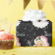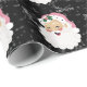 Hur upphetsad skulle din dotter vara på julförmiddagen för att se paket med det här Jultomten på rosa hatt och deras namn skriven över hela presenten? Snöflingor är utspridd på svart bakgrund.