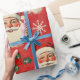 Denna pappra omslutning mellan vintage och stil är en upprepning av mönster i det klassiska Jultomten ansikte. Varje tomt sportar en röd hatt och ett vitt skägg av fullt, med rosykiga kinder och ett gult uttryck. Santas är sprit från grönt gräs, vilket ger en gnutta festiv grey till designen. Bakgrunden har ett rött, texturerat, svagt åldras, ge det till en nostalgisk känsla.