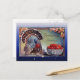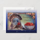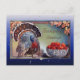 Vintagebild av en kalkon som står bredvid en skål röda äpplen och orden 'Thanksgivinghälsningar'. Färgschemat har varma jordtoner. Denna design är baserad på en allmän egendom bild från Nancy Oram-samlingen.