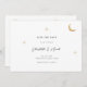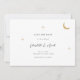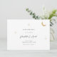 En modern kallelseinbjudan till ett lågprisbröllop har en enkel och elegant utformning. Den innehåller en guld-folie måne och stjärnor som är försiktigt gnistra och som är uppställda mot en ren bakgrund. Inbjudan användor klassisk serif-typografi, som ger en traditionell och formell kontakt med sitt vackra och tydliga stil.