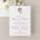 Bjud in gäster till din bröllopshelg med denna kolgrå hydrangea-inbjudan till repetitionen inför bröllopsfesten, som är designad med en raffinerad och återhållsam look. En handritad hydrangea-illustration visas högst upp, följt av ”Repetition inför bröllopsfesten” i mjuk kolgrå kalligrafi, med evenemangets detaljer nedan i klassisk serif-typografi. Den kolgrå och vita färgpaletten skapar en neutral, mångsidig design som fungerar vackert för formella repetitioner inför bröllopsfesten, kvällsevenemang och klassiska brölloppsmiljöer. Baksidan av inbjudan har kolgrå och vita vertikala ränder, vilket ger en polerad, arvsberättad finish. Ett sofistikerat val för par som söker en