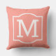 En klassisk utomhusdynor med en djärv vit monogram initial inom en dekorativ fästelista ram på en varm korallbakgrund. Den överdimensionerade bokstaven och den eleganta skåran bringar en sommarlik, feminin accent till uteplatsmöbler, trädgårdsmöbler eller poolstolar. Initialen är fullt anpassningsbar.
