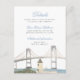 Klassiskt tilläggskort för bröllopsinbjudan vid kust med specialmålad akvarellgrafik av bron i Newport, Rhode Island. Anpassa denna inbjudan genom att lägga till information om ditt bröllop, inklusive mottagningens plats, boende och webbplats.