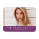 Skicka en fotomagnet till dina kära för att fira studenten. Studenten fotomagnet har ett snyggt-skriptteckensnitt, lila bakgrund och platshållare för en bild och anpassningsbar.