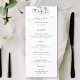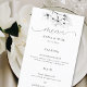 En gren av vita magnolier, hand plockade i svarta grafitpennor, dekorerar denna elegant, enkel, klassande och modern meny, svart och vitt bröllop. Den har modern, elegant-skriptkalligrafi med gott om blomning. Luxuriös men enkel, klassisk men chic, modern men tidlös. Ett vackert val för vår eller sommar bröllop med magnolias i möhippans bukett eller som accenter.