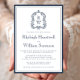 Klassisk marin blå monogram Vapensköld Vita Bröllo Inbjudningar