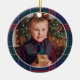 Festiv fotodekoration för helgdagarna har ett favoritmönster i bild med en klassisk marinblått, jägare grönt och röd skotsk tartan med mönsterad bakgrund. Anpassa ordalydelsen "God jul" i anpassningsbarna till namn och den nuvarande årstexten på baksidan. Fototips: skörd-foto till fyrkantigt format innan du överför det till designmallen. Foto kredit: Livia Plaskey Photography @liviaplaskeyphophy