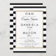 Med en klassisk svart och vit rand-bakgrund har duschinbjudan till elegant bröllop par en faux-guld-foil gräns som ger dig information om hur du duschar i par som finns i modern typografi av chic. Designad av Thisisnotme©