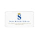 Enkel klassisk liten bokstav 's' vit monogram på guldbakgrund, med svart examenshatt / rektors hatt returadressetikett / postetikett.
