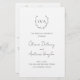 Traditionellt och klassiskt bröllopsprogram för svartvit stil med bröllop-vapensköld med ditt monogram inuti en andedräkt tillsammans med namn i ett skript/kalligrafi. Dessa enkla program, men elegant bröllop, är underbara för ett formellt bröllop.