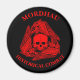 Klassisk skalle och raven Mordhau-logotyp på en rundmagnet