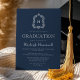 Klassisk Navy Blue Monogram Crest Examenstårtor Inbjudningar