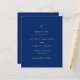 Denna design är en del av en klassisk navy och crème bröllopsinbjudan serie med en enkel men elegant stil. Denna tidlösa estetik är perfekt för par som planerar ett formellt, traditionellt eller svart-tie bröllop. Den djupa navy-färgen i kombination med crème ger denna design en sofistikerad, romantisk känsla som är bra för ett kust- eller strandbröllop.