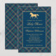 Klassisk Preppy Rutig Blå Equestrian Bebis Shower Inbjudningar